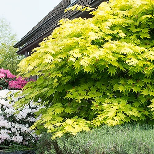 Also known as the ?Golden Full Moon? Maple, Acer shirasawanum ‘Jordan’ is a slow-growing beauty with stunning, uniquely coloured, fan-shaped leaves.