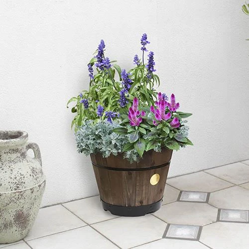 The small Barrel Kit is a lovely addition to any garden or patio area. This product is great for adding colour and providing the perfect home for various plants. The base of this attractive planter is made from plastic to prevent it from rotting and allows maximum aeration and drainage for the roots, providing optimum conditions for plant growth. This feature also allows you to have the option to move the planter in the future if required.