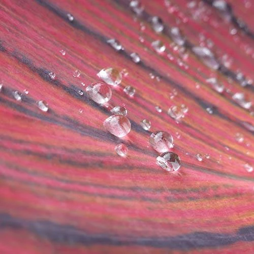 ‘Tropicanna’ produces foliage which is striped in a rainbow of colours with greens, purples, oranges and pinks, creating a dazzling effect that is further enhanced when the orange flowers appear.