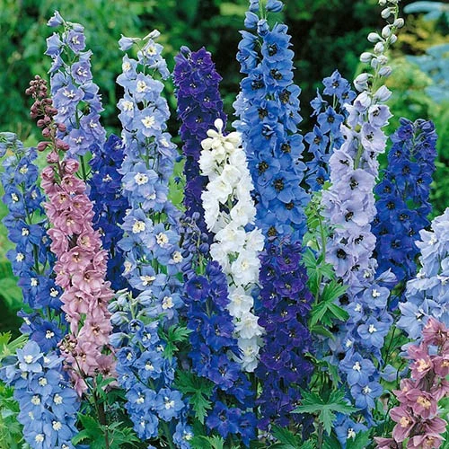 Main varieties Included (but not guaranteed): Achillea ‘Summer Berries’, Delphinium ‘Pacific Giant Mix’, Digitalis (Foxglove) ‘Dalmation Mixed’, Hollyhocks ‘Chaters Double Mixed’, Coreopsis ‘Early Sunrise’, Gaillardia ‘Mesa Mix’, Geum ‘Lady Stratheden’, Aquilegia ‘Mrs Scott Elliot’, Alchemilla mollis, Campanula ‘Blue Bells’, Verbena bonariensis, Rudbeckia ‘Goldsturm’.