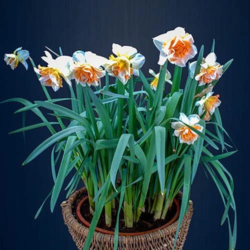 Narcissus Replete is a gorgeous and eye-catching double flowering variety that produces large, creamy apricot coloured blooms with dark orange centres that can reach over 10cm across.