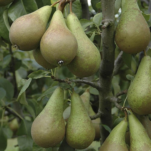 Buerre Hardy Pear ? This scrumptious pear variety. with its russet skin, produces large crops of elegant, tapering fruits with white flesh that are ready to pick from September each year. Each one is packed with an incredibly sweet, irresistible juice ? delicious when eaten straight from the tree! Try to save some for later, though, as they will make wonderful desserts for your Christmas parties. Concorde is perfect for gardeners to grow because it is very heavy cropping and will keep for over two months when picked unripe. Crops: September?October