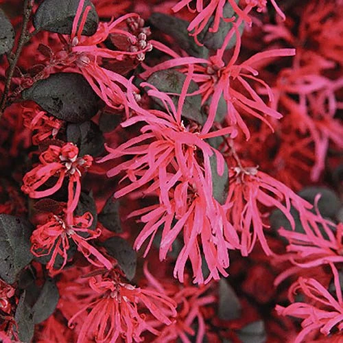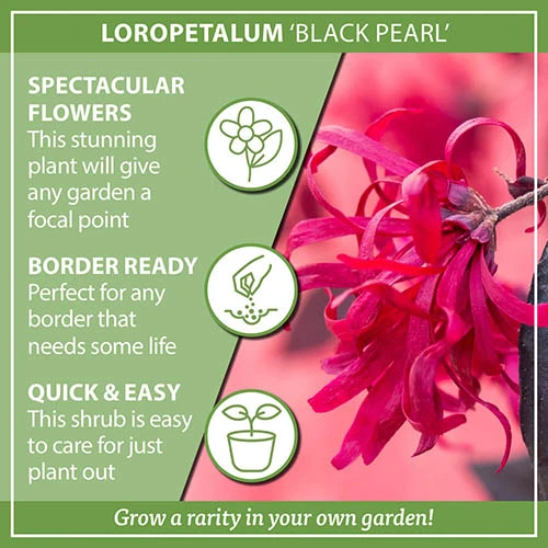 Its glorious, rich burgundy, oval-shaped leaves contrast superbly against any green foliage and act as a dramatic backdrop to its spectacular, vibrant pink flowers. Often likened to sea coral, the highly unusual ribbon-shaped petals explode from the centre just like a firework and completely smother the plant from February to April, just when you need interest in your garden.