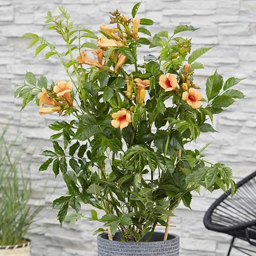 This colourful and exotic looking ?trumpet vine? is the perfect exotic climber to bring a taste of the Mediterranean to your patio this summer!