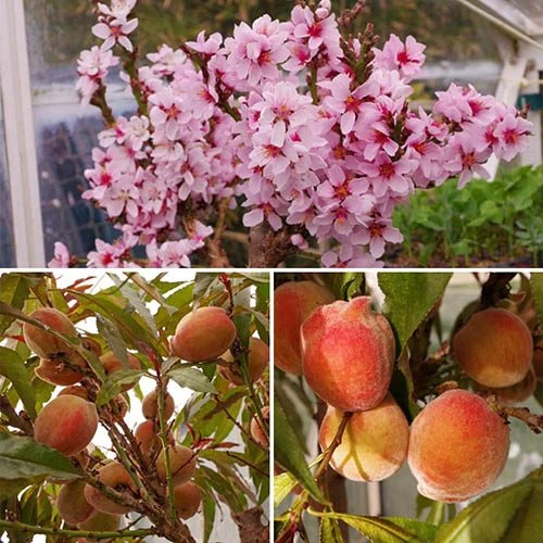 - Naturally dwarf, these patio peaches need little or no pruning to keep their compact shape.