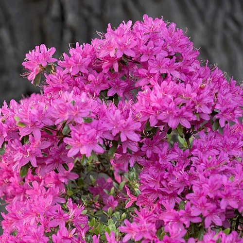 The exotic looking blooms of Rhododendron ‘Nova Zembla’ appear in early May, and are produced in large, showy clusters. Each bright red flower is distinctively marked at the centre with violet-brown. If positioned in full sun, the blooms fade to a strong pink which is equally eye-catching.