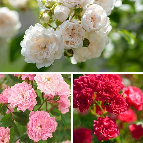 This collection includes a mix of 3 colourways from the Polyantha Roses;