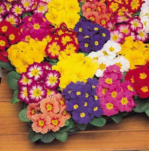 Primrose Bonelli Mix –Â A superb new hardy Primrose mix, flowering in the widest range of dazzling colours including beautiful bicolours. Very early to bloom, flowering from mid-autumn and providing spectacular winter colour. Compact in habit and uniform in flower time. The perfect Primrose for winter containers and borders.